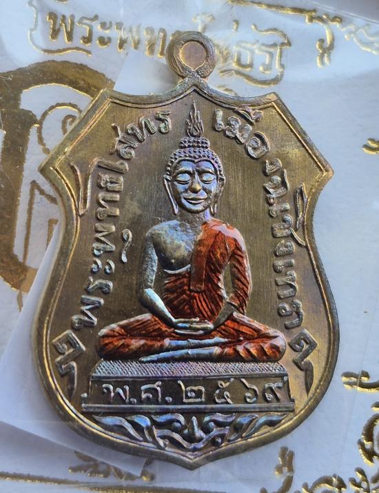 เหรียญโล่ หลวงพ่อโสธร รุ่นเจ้าสัว ปลุกเสกติดต่อกัน5วันเกจิ500กว่ารูป เนื้อสัมฤทธิ์ลงยา เลข 344
