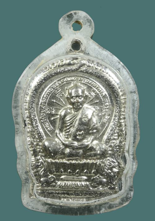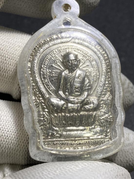 เหรียญนั่งพาน หลวงปู่ทิม รุ่น มงคลศิลาฤกษ์ ปี 2537 สวย เลี่ยมเดิม ด้านหลังติดจีวร