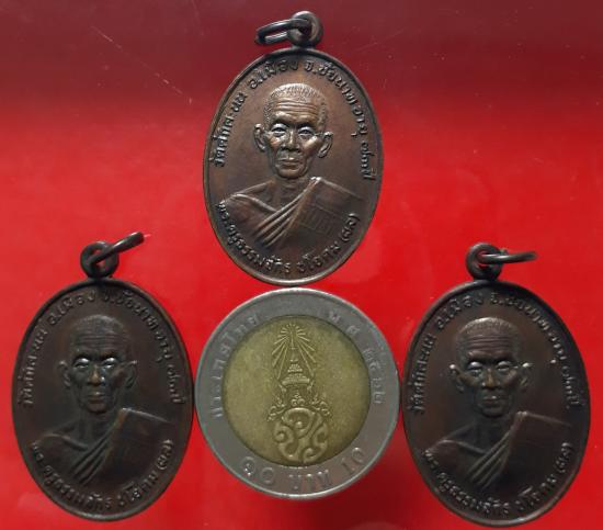 เหรียญหลวงพ่อผล วัดดักคะนน จ.ชัยนาท ปี 2530 เนื้อทองแดง 3 เหรียญ เคาะเดียวแดง
