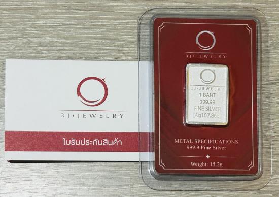 วัดใจ เงินแท่ง 999.9% หนัก 1 บาท ยี่ห้อ 3j jewelryในการ์ด พร้อมบัตรรับประกันสินค้า