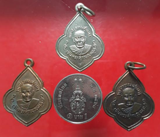 เหรียญหลวงพ่อจันทร์ วัดบ้านยาง ไม่ทราบที่ (เนื้ออัลปาก้า1)(เนื้อทองแดง2) เคาะเดียวแดง