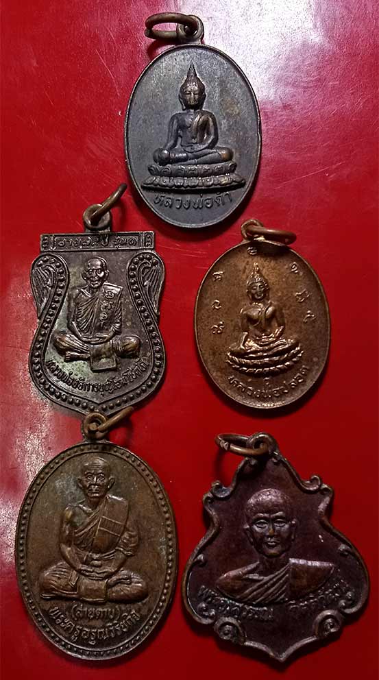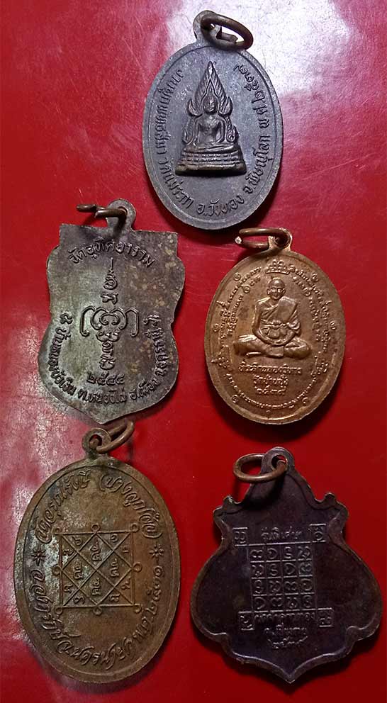 ***วัดใจ...ปีใหม่ไทย*** (5 องค์) เหรียญ (รุ่นแรก) หลวงพ่อดำ หลังพระพุทธชินราช วัดแม่ระกา จ.พิษณุโลก (พิธีใหญ่) + เหรียญ (รุ่นแรก) หลวงพ่อปลอด วัดบ้านชุ้ง จ.อยุธยา + เหรียญ (รุ่นแรก) หลวงพ่ออธิการบุญโฮม โชติโก วัดอุทิศยาราม จ.อุดรธานี + เหรียญ (รุ่นแรก) พระครูสุวรรณ วัดจำคาวตอง จ.เชียงราย + เหรียญ (รุ่น 3) หลวงพ่อสายตาบ วัดอรุณรังษี (บางลูกเสือ) นครนายก + ชุดนี้ ศักดิ์สิทธิ์มากๆครับ พระมีประสบการณ์สูง พุทธคุณเยี่ยม เมตตา โชคลาภ ค้าขาย แคล้วคลาด มหาอุตม์!!!เยี่ยมครับ + จบได้เท่าไรเท่านั้นครับ