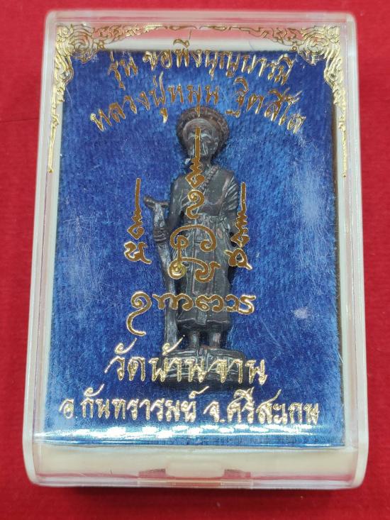 รูปหล่อพิมพ์ยืน หลวงปู่หมุน รุ่นพึ่งบารมี ปี2557 วัดบ้านจาน จ.ศรีสะเกษ เนื้อทองเหลืองรมดำ กล่องเดิม