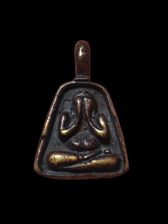 เหรียญหล่อพระปิดตา หลวงพ่อผัน วัดราษฎร์เจริญ พิมพ์จอบเล็ก ปี 2526 จ.สระบุรี