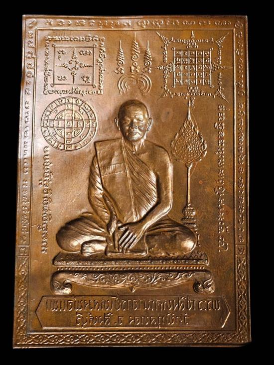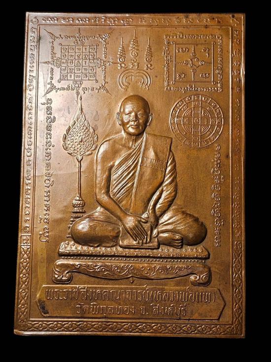 แผ่นปั๊มทองแดง หลวงพ่อแพ วัดพิกุลทอง จ.สิงห์บุรี รุ่น 1 หรือรุ่น "พระสุนทรธรรมภาณี" จัดสร้างเมื่อปี พ.ศ. 2529 |