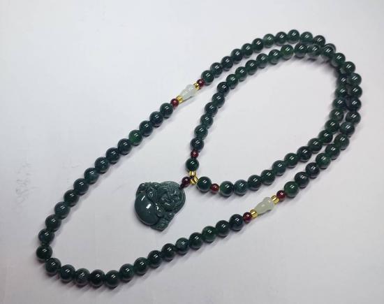 ***วัดใจ***สร้อยหยกจักรพรรดิ์ ขั้นด้วยโกเมน พร้อมจี้ สวยๆ เม็ด 6 มิล ยาว 22 นิ้ว