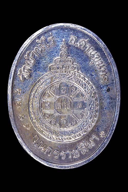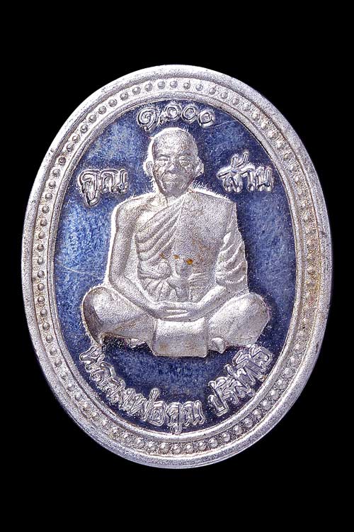 เหรียญรูปไข่พิมพ์นั่งสมาธิ รุ่น เสาร์ห้า คูณพันล้าน ( เนื้อเงินขัดเงา พ่นทราย ) หมายเลข 9888 พ.ศ.2537