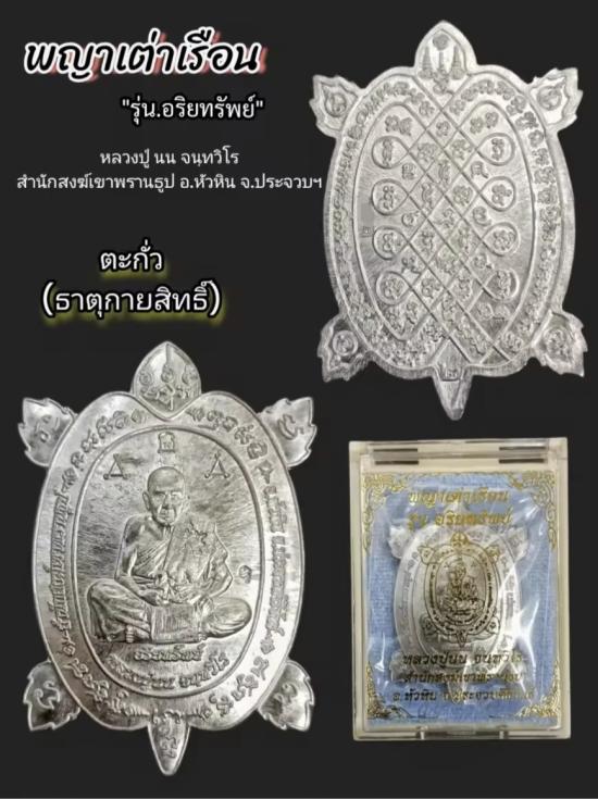 เหรียญพญาเต่าเรือน อริยทรัพย์ หลวงปู่นน สำนักสงฆ์เขาพรานธูป จ.ประจวบคีรีขันธ์ ปี2561 เนื้อตะกั่วธาตุกายสิทธิ์ กล่องเดิมๆจากวัด ประกันแท้ ชุด5องค์