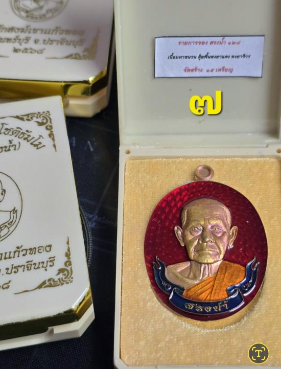 บล็อก "หลังสรงน้ำ"... เหรียญรุ่น"สรงน้ำ" หลวงปู่บุญมา โชติธัมโม วัดเขาแก้วทอง ปราจีนบุรี เนื้อมหาชนวน ลงยาแดง ลงยาจีวร,ป้ายน้ำเงิน บล็อกหลัง"สรงน้ำ" ตอก"สรงน้ำ" ตอก"หัวเสือ" หมายเลข ๗...สร้างเพียง