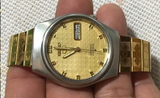 ???..Seiko 5 หน้าทองลายผ้า สายทอง ...???