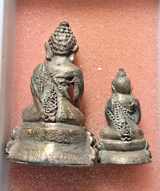 พระกริ่ง + พระชัยวัฒน์ หลวงพ่อหยอด วัดแก้วเจริญ รุ่น สมปรารถนาเฮง ปี2537 สมุทรสงคราม เนื้อนวะ โลหะ กล่องเดิมตอกโค๊ต เคาะเดียว