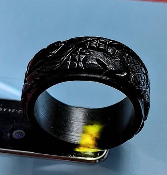 แหวนหยกดำแกะลายมังกร หยกพม่าแท้ 100 % (แสงส่องผ่าน) เส้นผ่าศูนย์กลาง 2.2 ซม. หนา 1.1 ซม. วงใหญ่ๆ หายากและมีราคาค่อนข้างสูง (กท.31)