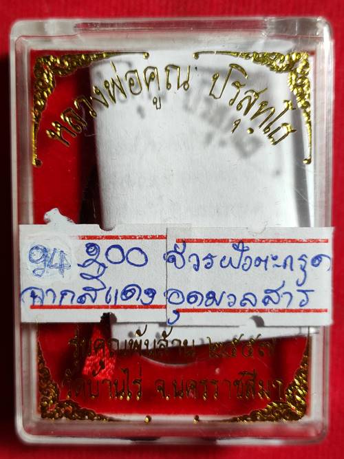 ล็อคเก็ตหลวงพ่อคูณ ปริสุทโธ รุ่น คูณพันล้าน ออกวัดบ้านไร่ ปี 2557 ฉากสีแดงอุมวลสารฝังตะกรุดติดจีวร หมายเลข 200 สภาพสวย เคาะเดียวแดง