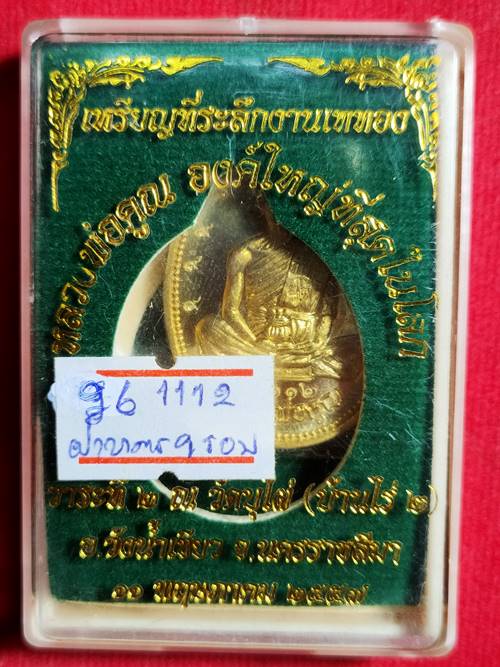 เหรียญหลวงพ่อคูณ ปริสุทโธ ที่ระลึกงานเททองหล่อหลวงพ่อคูณ องค์ใหญ่ที่สุดในโลก วัดบ้านไร่ ปี 57 เนื้อ ทองฝาบาตร หมายเลข 1112 สภาพสวย เคาะเดียวแดง