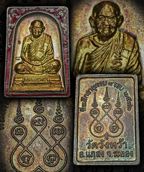 เหรียญแสตมป์ 8 รอบ หลวงปู่คร่ำ วัดวังหว้า เนื้อเงินลงยาหน้าทองคำ ปี2536 จ.ระยอง
