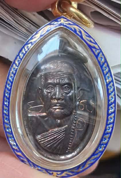 เหรียญ...เล็กหน้าใหญ่ หลวงปู่หมุน วัดบ้านจาน...พร้อมรอยจารย์ สภาพสวยเดิม ๆ.. เลี่ยมเงิน ชุบทอง ลงยา