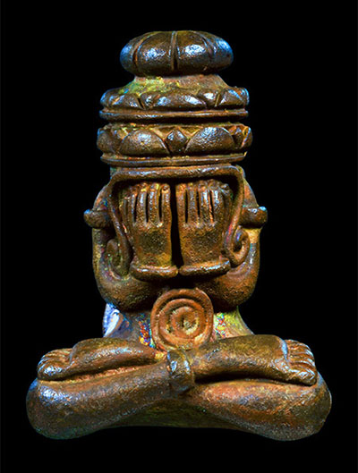 ๓. เนื้อพระบูชาตอกโค้ต กงจักรเล็ก ตรงกลาง ตอกโค้ตตรีศูล ซ้าย-ขวา รวมทั้งตอกหมายเลขกำกับด้วย