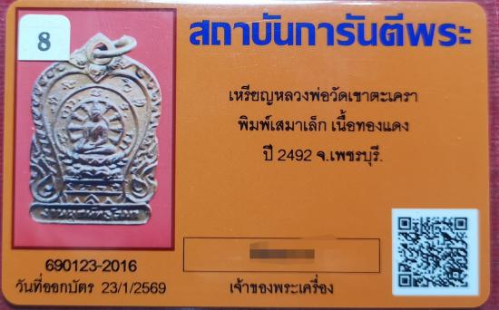 เหรียญเสมาเล็ก ลพ.วัดเขาตะเครา เนื้อทองแดง ปี2492 จ. เพชรบุรี มาพร้อมบัตรรับรอง |