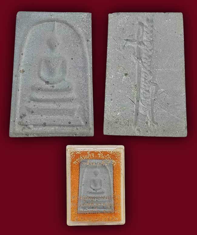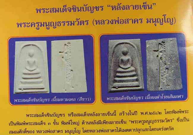 สมเด็จชินบัญชร หลังลายเซ็นต์ เนื้อดำ มีเส้นเกษา หลวงพ่อสาคร วัดหนองกรับ ระยอง ปี 2542 |