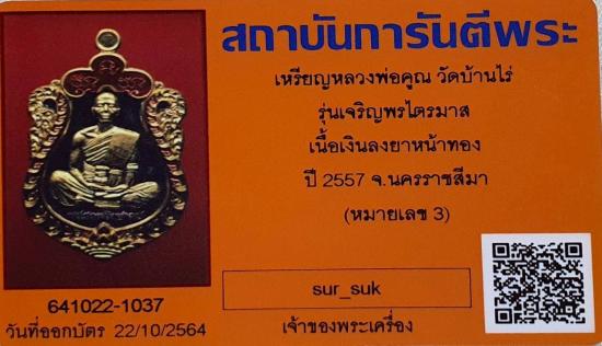 ## บัตรรับรองพระแท้ ออกโดย สถาบันการันตีพระ no. 641022-1037