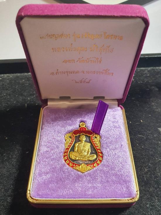เหรียญหลวงพ่อคูณ รุ่นเจริญพรไตรมาส หมายเลข 3 เนื้อเงินลงยาหน้าทอง ปี2557 พร้อมกล่องเดิมจากวัด