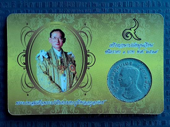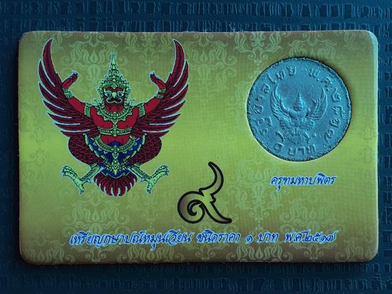 เหรียญกษาปณ์หมุนเวียน ชนิดราคา 1 บาท ของรัชกาลที่ 9 รุ่นครุฑพ่าห์ ปี พ.ศ. 2517 พร้อมการ์ดพร้อมซองแก้ว