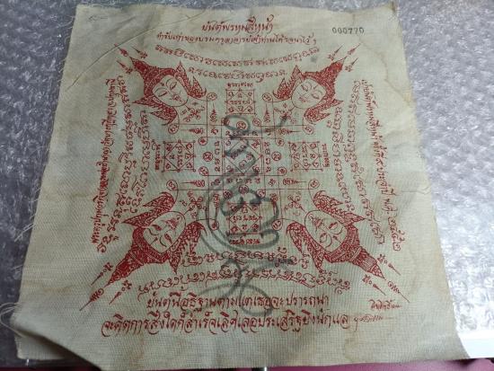 หลวงพ่อชำนาญ ผ้ายันต์พรหมสี่หน้า งานเป่ายันต์พรหมสี่หน้าครั้งที่ 9 ประจำปี พ.ศ.๒๕๕๒ มีจาร ขนาดประมาณ9*9นิ้ว ปั้มตราวัดตอกเลขทุกผืน สภาพเดิมๆ |