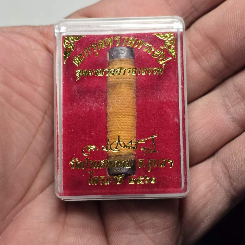 (เชือกพันทำจากผ้าห่อศพ) ตะกรุดพรายกระซิบ หลวงปู่สวัสดิ์ ภูมิสาโร วัดป่าแสนอุดม จ.อุบลฯ ลูกศิษย์เอก อ.เปล่ง บุญยืน กล่องเดิมจากวัด |