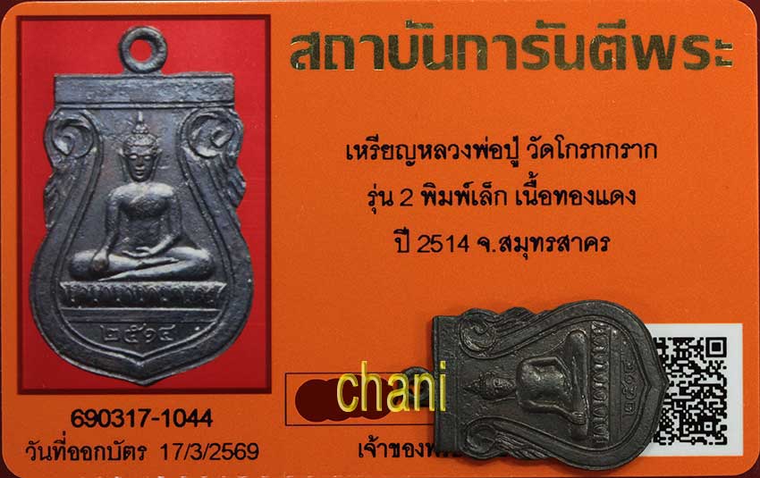 เหรียญ หลวงพ่อปู่ วัดโกรกกราก รุ่น2 พิมพ์เล็ก เนื้อทองแดง ปี2514 จ.สมุทรสาคร สภาพสวยไม่ผ่านการใช้ พร้อมบัตรรับรองพระแท้จากการันตีพระสบายใจได้พระแท้แน่นอน ค่ะ