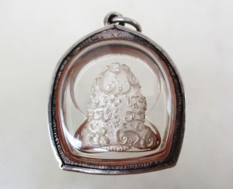 พระปิดตารุ่นมีโชคมีลาภ หลวงปู่ศรี มหาวีโร วัดป่ากุง จ.ร้อยเอ็ด พ.ศ.2551 เนื้อเงิน ตอก 2 โค๊ต ตอกเลข เลี่ยมกรอบเงินยกซุ้มห่วงเชื่อม !!