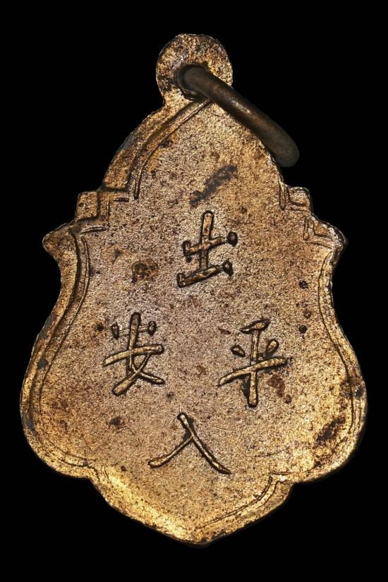 เหรียญปราสาทเขาวงพระจันทร์ รุ่นแรก วัดเขาวงพระจันทร์ ห่วงเชื่อม หลังตัวหนังสือภาษาจีน เนื้อทองแดงกะไหล่ทอง ปี2480 จ.ลพบุรี สภาพสวย