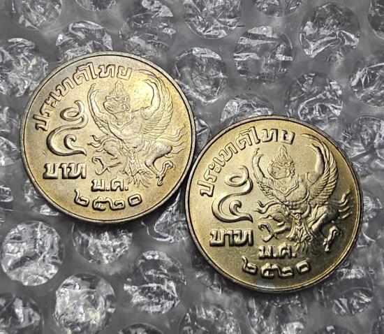 เหรียญ 5 บาท ครุฑเฉียง ปี2520ไม่ผ่านใช้2เหรียญ