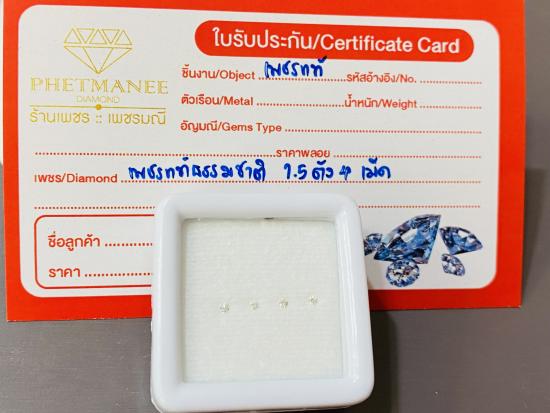 เพชรแท้ธรรมชาติ เหลี่ยมเบลเยี่ยมคัต แกะจากตัวเรือนสินหลุดจำนำ สภาพสมบูรณ์ น้ำหนัก 0.06 กะรัต (1.5 ตัง 4 เม็ด) น้ำประมาณ ~98-99VS1-VVS