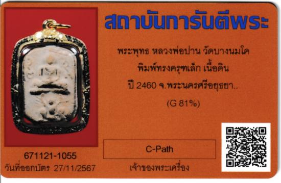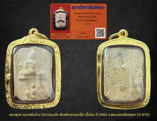 พระพุทธ หลวงพ่อปาน วัดบางนมโค พิมพ์ทรงครุฑเล็ก เนื้อดิน ปี 2460 จ.พระนครศรีอยุธยา เลี่ยมทองคำแท้