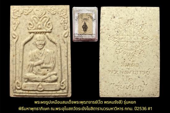 พระผงรูปเหมือนสมเด็จพระพุฒาจารย์(โต พรหมรังสี) รุ่นหยก พิธีมหาพุทธาภิเษก ณ.พระอุโบสถวัดระฆังโฆสิตารามวรมหาวิหาร กทม. ปี2536 เคาะเดียว