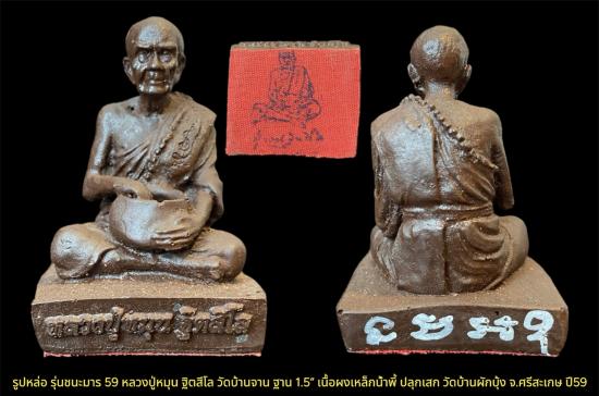 รูปหล่อ รุ่นชนะมาร 59 หลวงปู่หมุน ฐิตสีโล วัดบ้านจาน ฐาน 1.5 เนื้อผงเหล็กน้ำพี้ ปลุกเสก วัดบ้านผักบุ้ง จ.ศรีสะเกษ ปี59 เคาะเดียว