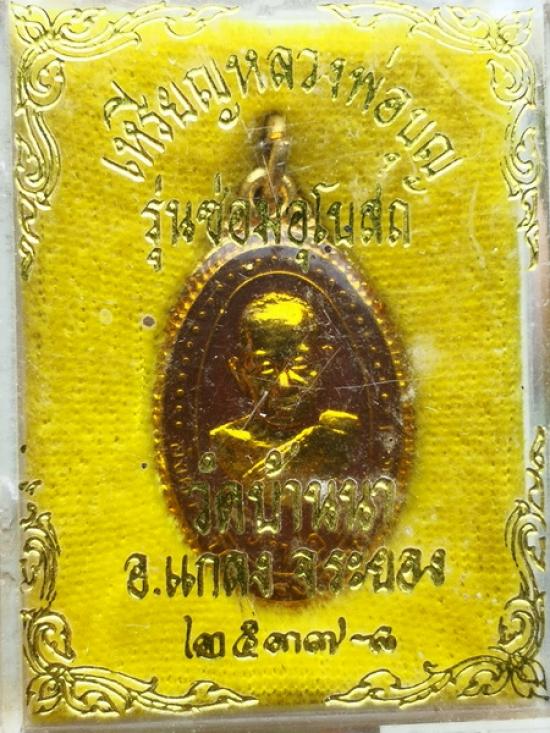 เหรียญรูปไข่กะไหล่ทองลงยา หลวงพ่อบุญ วัดบ้านนา จ.ระยอง พ.ศ.2537 รุ่นซ้อมอุโบสถ