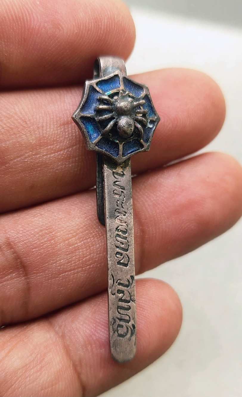 แหนบแมลงมุมดูดทรัพย์ หลวงปู่สุภา กนฺตสีโล เนื้อเงิน นน. = 5.58 กรัม จ.ภูเก็ต ครับ |