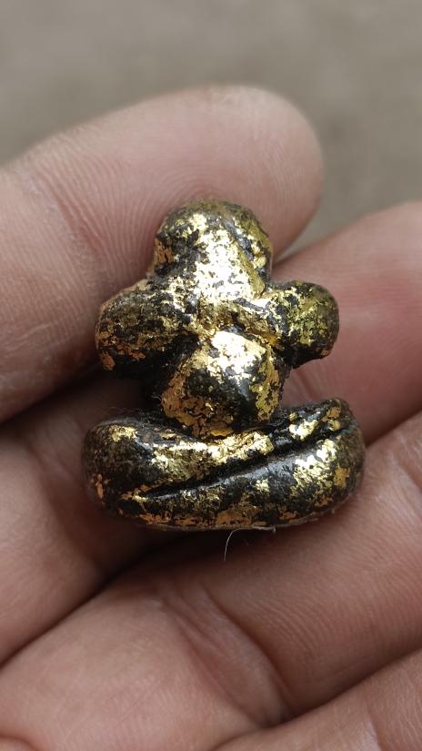 พระปิดตาเนื้อผงคลุกรัก ฝังตะกรุดเงินปิดทอง