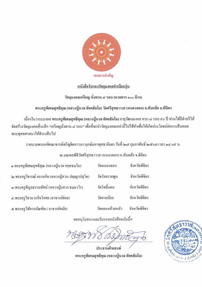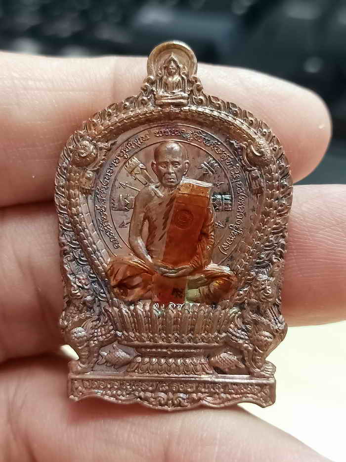 วัดใจ 100 เหรียญนั่งพาน 8 รอบ มวลสาร 100 ล้าน หลวงปู่นวล วัดศรีสุทธาวาส(วัดหนองจอก) อ.ทับคล้อ จ.พิจิตร ปี 2567 ทองแดง ลงยาจีวร หลังเรียบ เลเซอร์ หมายเลข 14 กล่องเดิม