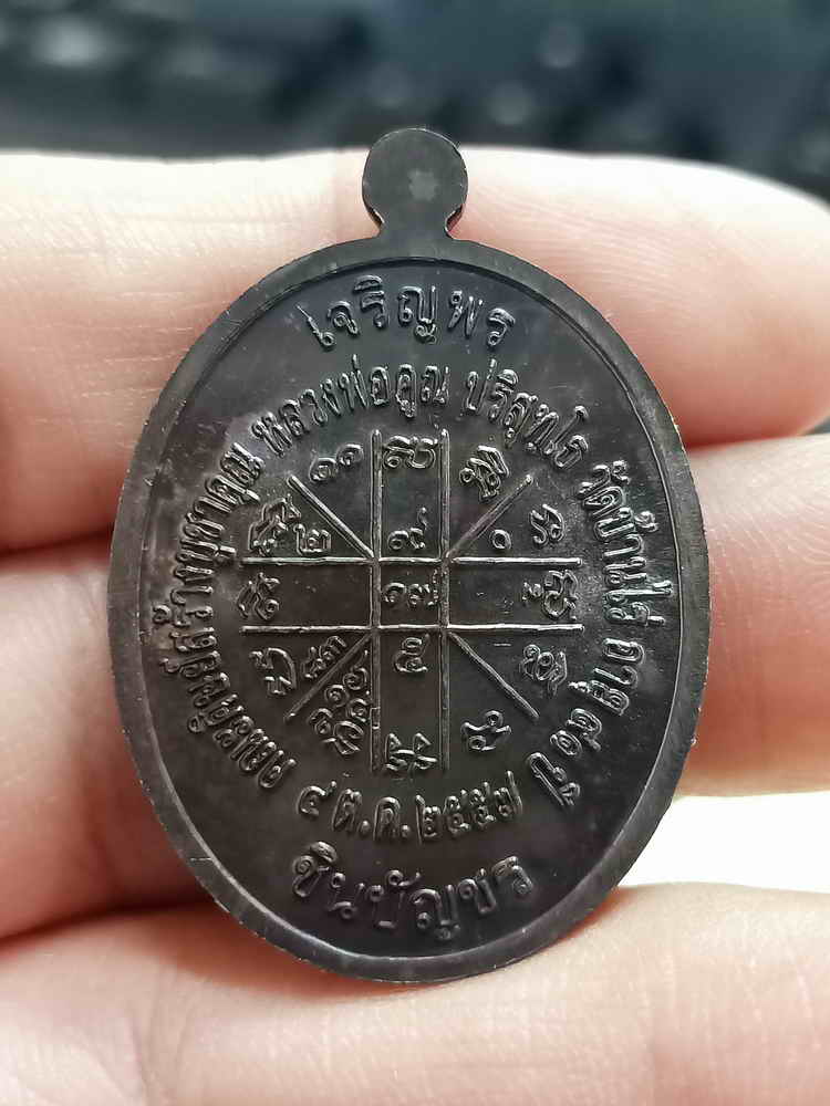วัดใจ 100 เหรียญครึ่งองค์ รุ่นเจริญพร ชินบัญชร หลวงพ่อคูณ ปริสุทโธ วัดบ้านไร่ จ.นครราชสีมา 2557 รก 10.3 ทองแดงรมดำ หมายเลข 2518 กล่องเดิม