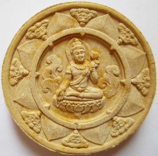 ผงกลมเทวราชโพธิสัตว์ รุ่นทรัพย์เทวา ปี 2550 จำนวน 2 องค์ ดำ-เหลือง