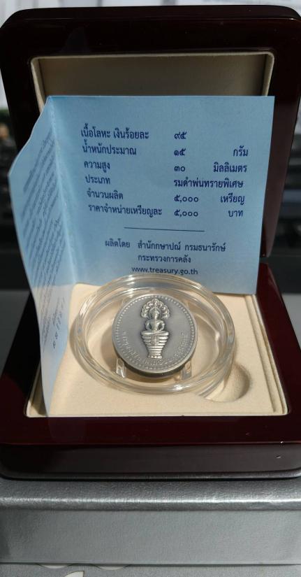 เหรียญพระพุทธสิรินาคเภษัชยคุรุจุฬาภรณ์ (เหรียญพระพุทธโอสถ) โรงพยาบาลจุฬาภรณ์ พ.ศ.2558 เนื้อเงิน กล่องเดิม อุปกรณ์ครบ จำนวนการสร้าง: 5,000 เหรียญ
