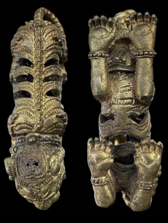 เสือโลหะ เนื้อทองเหลือง ข้างในกลวง มีตะกรุด ไม่ทราบเกจิอาจารย์รุ่นปีที่สร้างครับ เดิมๆผมได้มาแบบนี้ครับ ยังมีพระอีกหลายรายการ จะค่อยๆ ทยอยลงให้นะครับ เท่าไหน เท่านั้นครับ |
