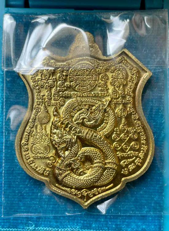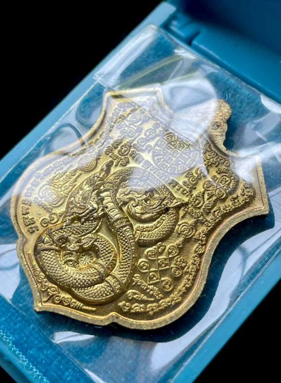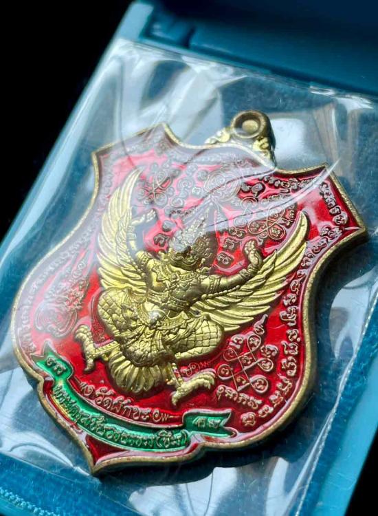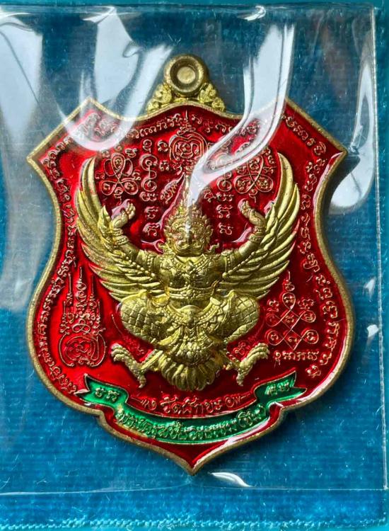 วัดใจ เหรียญพญาครุฑ-พญานาค รุ่น เจริญยศเจริญลาภ หลวงตาขึม วัดผักขะ จ.ศรีสะเกษ ปี 2563 เนื้อทองฝาบาตร ลงยาแดง เลข 162 กล่องเดิม |