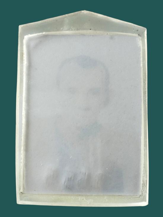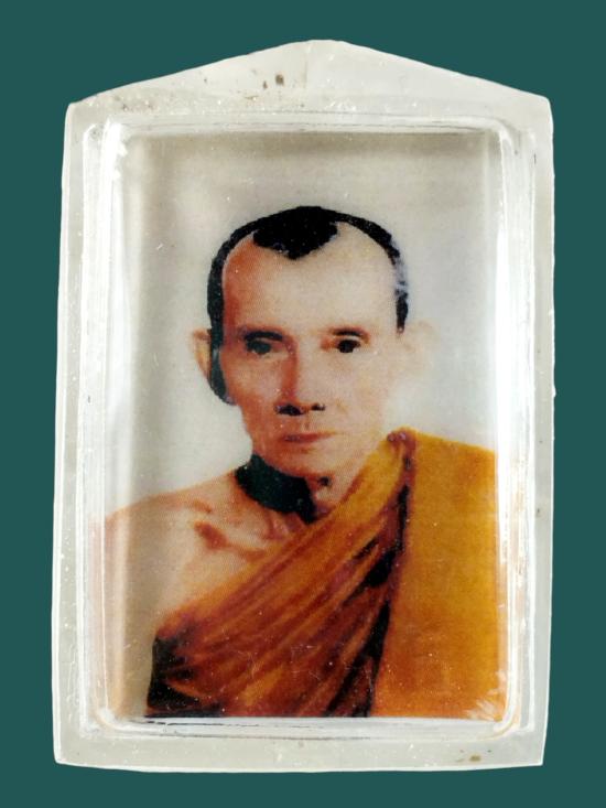 ภาพหลวงพ่อกวย ไม่ทราบรุ่นปีและที่จัดสร้าง มีตอกเลขที่ภาพ เข้าเลี่ยมกันน้ำไว้แล้ว