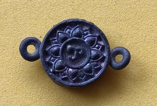 ๑๐๙-หัวนะโมมหาสำเร็จ วัดพระมหาธาตุนครศรีฯ เนื้อแร่ชนวนฯ ปี๖๒ ขนาด๑ซม. หลังดอกพิกุล |