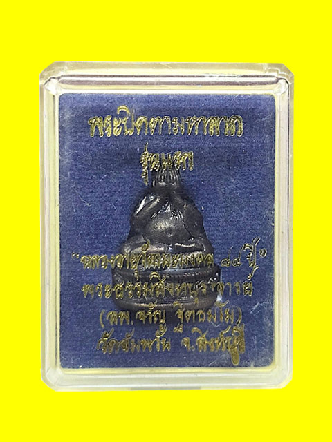 ***พระปิดตามหาลาภ รุ่นแรก เนื้อทองแดงรมดำ รุ่น ฉลองอายุวัฒนะ 84 ปี หลวงพ่อจรัญ วัดอัมพวัน จ.สิงห์บุรี ปี 2554 กล่องเดิมจากวัด***