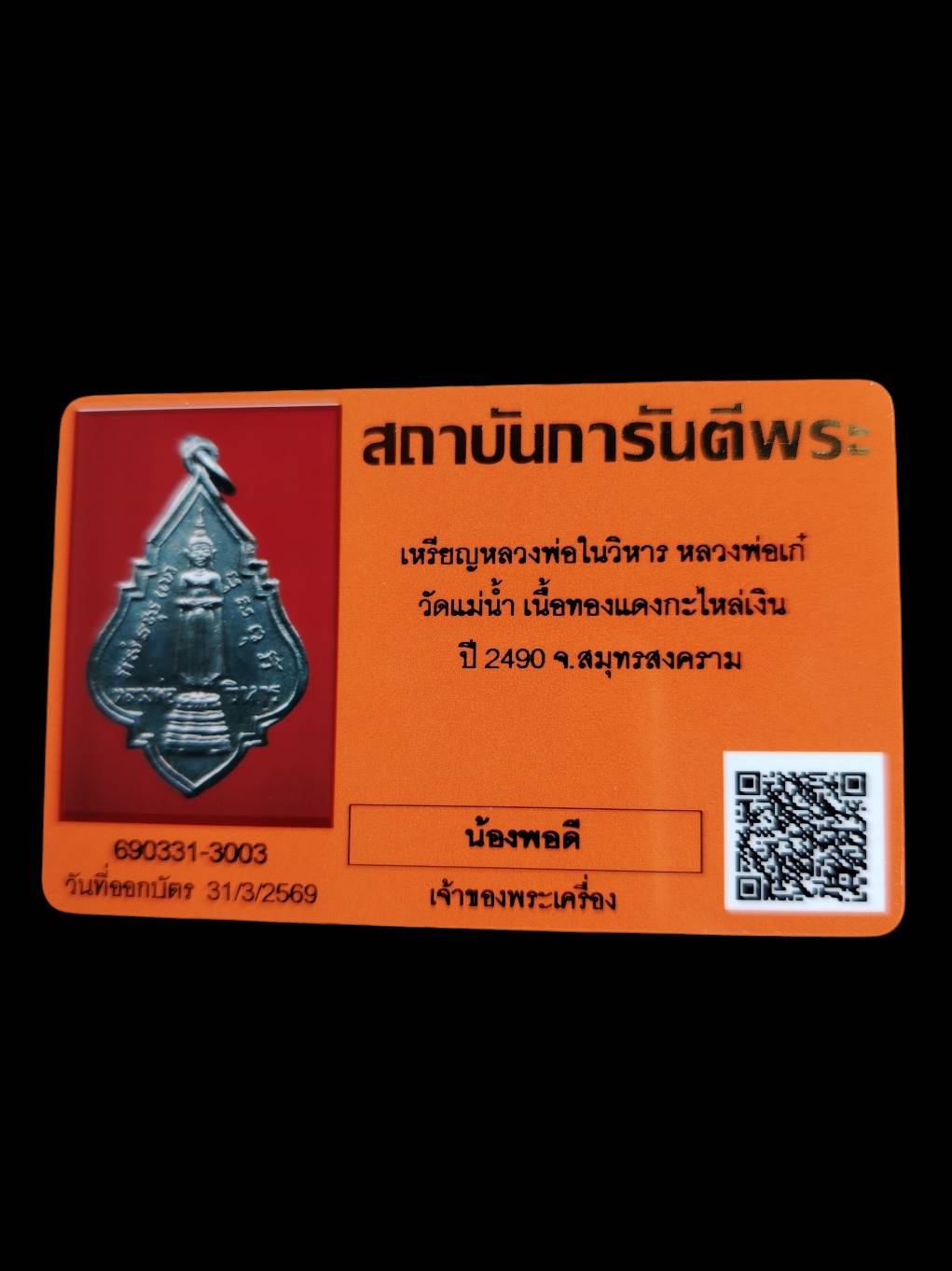 เหรียญหลวงพ่อในวิหาร หลวงพ่อเก๋วัดแม่น้ำ 2490 มาพร้อมบัตรรับรองสวยงาม