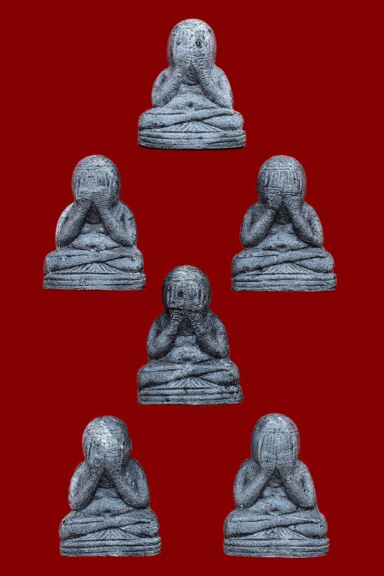 ชุด 6 องค์...พระปิดตามหาเศรษฐี (ลอยองค์) รุ่นแรก เนื้อผงมวลสาร หลังจารยันต์ ปี 2552 หลวงปู่น้อย วัดบ่อหลวง จ.เพชรบุรี พร้อมซองรูปใบฝอยเดิมจากวัด